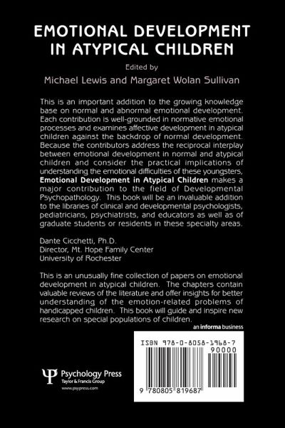 Early emotional development, emotional regulation, and the links between emotion and social or cognitive functioning in atypically developing children have not received much attention. This lack is due in part to the priorities given to the educational and therapeutic needs of these children. Yet an understanding of the basic emotional processes in children with atypical development can only serve to promote more effective strategies for teaching and intervening in the lives of these children and their families and may contribute to our understanding of basic emotional processes as well. When referring to "emotions," the editors mean some complex set of processes or abilities, whether or not the topic is normal or atypical development. Specifically, they use the term "emotion" to refer to at least three things -- emotional expressions, emotional states, and emotional experiences. The focus of this volume, these three aspects of emotional life are affected by socialization practices, maturational change, and individual biological differences including, in this case, differences in children as a function of disability. Contributors examine the development of emotions in children with organic or psychological disorders as well as those in compromised social contexts making this volume of prime importance to developmental, clinical, and social psychologists, educators, and child mental health experts.