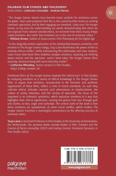 ''The Hunger Games movies have become iconic symbols for resistance across the globe. Tarja Laine proposes that this is not caused by their status as exciting cinematic spectacles, but by their engaging our emotions. Laine uses The Hunger Games as key texts for understanding our world, demonstrating that ethics do not originate from rational considerations, far removed from those mucky things called emotions. But rather that emotions are at the core of cinematic ethics."