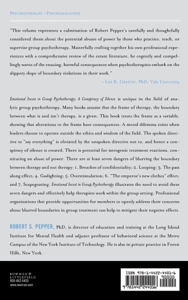 Preface: Emotional Incest in Group Psychotherapy-A Conspiracy of Silence Chapter 1: The Importance of the Frame and Why Group Therapy Chapter 2: Dual Relationships in Group Psychotherapy: The Pros & Cons Chapter 3: The Intrapersonal, Interpersonal, and Systemic Forces of Cult-Like Group Training Institutes Chapter 4: Paradoxes in Group Psychotherapy Chapter 5: The Seven Dangers of Blurred Boundaries in Group Therapy Chapter 6: Other People's Stories Epilogue