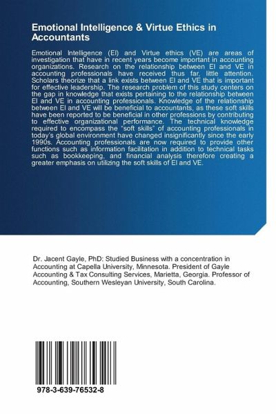 Emotional Intelligence (EI) and Virtue ethics (VE) are areas of investigation that have in recent years become important in accounting organizations. Research on the relationship between EI and VE in accounting professionals have received thus far, little attention. Scholars theorize that a link exists between EI and VE that is important for effective leadership. The research problem of this study centers on the gap in knowledge that exists pertaining to the relationship between EI and VE in accounting professionals. Knowledge of the relationship between EI and VE will be beneficial to accountants, as these soft skills have been reported to be beneficial in other professions by contributing to effective organizational performance. The technical knowledge required to encompass the "soft skills" of accounting professionals in today's global environment have changed insignificantly since the early 1990s. Accounting professionals are now required to provide other functions such as information facilitation in addition to technical tasks such as bookkeeping, and financial analysis therefore creating a greater emphasis on utilizing the soft skills of EI and VE.