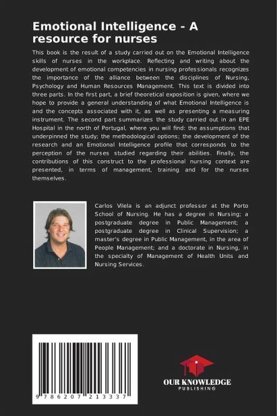 This book is the result of a study carried out on the Emotional Intelligence skills of nurses in the workplace. Reflecting and writing about the development of emotional competencies in nursing professionals recognizes the importance of the alliance between the disciplines of Nursing, Psychology and Human Resources Management. This text is divided into three parts. In the first part, a brief theoretical exposition is given, where we hope to provide a general understanding of what Emotional Intelligence is and the concepts associated with it, as well as presenting a measuring instrument. The second part summarizes the study carried out in an EPE Hospital in the north of Portugal, where you will find: the assumptions that underpinned the study; the methodological options; the development of the research and an Emotional Intelligence profile that corresponds to the perception of the nurses studied regarding their abilities. Finally, the contributions of this construct to the professional nursing context are presented, in terms of management, training and for the nurses themselves.