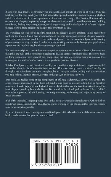 If you're always having trouble dealing with negative emotions in your place of work and can't take it anymore, then this book is for you. Our world today is nothing like our ancestors have ever faced. A fast-paced world of economic uncertainty and turbulent workplaces, and our bodies have not evolved to deal with the kind of stress that this new situation presents. In this book, Lawrence Franz lucidly explains what emotional intelligence is and how it is clearly tied with our ability to control stress, especially in the workplace. Here's the thing: If you have any love at all for what you do, you know your lack of emotional control is causing you stress and straining your relationships with others at work, and you've tried many methods recommended by "gurus" to help you with it, but it simply doesn't work. The reason they don't work is simple: They are not practical. This book is going to change that. Here's a sample of what you'll discover in this guide: -How to identify your stress triggers in the workplace and keep them in check. -16 simple, but effective ways of maintaining a stellar relationship with others in the workplace -Don't let negative emotions wreck your ship: How to deal with unhealthy emotions -Techniques and strategies to boost your self-confidence and set yourself up for long-lasting success -Traits of an effective leader -and more! Deeply insightful and highly practical, Emotional Intelligence at Work is a vast resource filled with actionable tips, tactics and strategies to help you deal with a wide range of unhealthy emotions and stress, helping you grow and thrive in an uncertain world. Scroll up and click the button to buy now and get started on your journey to becoming more confident, self-aware and stress-free individual today!
