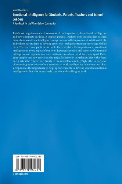 This book heightens readers' awareness of the importance of emotional intelligence and how it impacts our lives. It inspires parents, teachers and school leaders to learn more about emotional intelligence as a process of self-improvement, relational skills, and to help our students to develop emotional intelligence from an early stage of their lives. There are four parts in the book. Part 1 explains the importance of emotional intelligence in every aspect of our lives. It presents models and theories of emotional intelligence and explains how our emotions control our mind, body and spirit. Part 2 gives insights into how emotions play a significant role in our relationships with others. Part 3 takes the reader from family to the workplace and highlights the importance of becoming more aware of our emotions at work and how we relate to others. Part 4 emphasises the importance of helping our students to develop essential emotional intelligence to face this increasingly complex and challenging world.