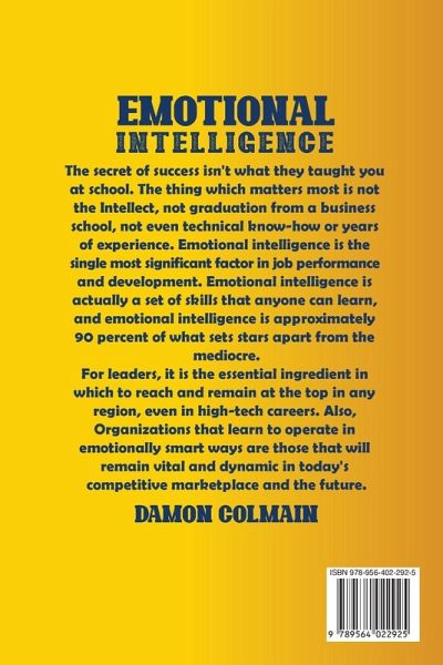 In today's fast-paced world of ambitious workplaces and volatile economic conditions, we are each searching for effective tools that can help us navigate, adjust, and strike ahead of the pack. Emotional Intelligence (EQ) needs no explanation by now - it's no secret that EQ is crucial for your performance. But understanding what the EQ is and knowing how to use it to improve your life are two things that are very different. This book provides a step-by-step plan to increase your EQ through four core EQ skills that allow you to reach your full potential: Emotional Intelligence is a single purpose book that helps you in the following ways: Self-Awareness Self-Management Social Awareness Relationship Management Let you regulate your feelings Differentiate between EQ to IQ Anger management Showing job best performance The secret of success isn't what they taught you at school. The thing that matters most is not the Intellect, not graduation from a business school, not even technical know-how or years of experience. Emotional intelligence is the single most significant factor in job performance and development. Emotional intelligence is actually a set of skills that anyone can learn, and emotional intelligence is approximately 90 percent of what sets stars apart from the mediocre. For leaders, it is the essential ingredient in which to reach and remain at the top in any region, even in high-tech careers. And organizations that learn to operate in emotionally smart ways are those companies that will remain vital and dynamic in today's competitive marketplace and the future.
