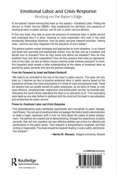 Chapter 1 Emotional Labor as Public Good and the State as Harbor of Refuge Chapter 2 A Blind Spot in Public Administration Theory ... But Not in Practice (still) Chapter 3 Human Capital Issues Chapter 4 Communicating Competence and Cultivating Trust Chapter 5 Who Gets the Blame? Who Gets the Credit? Chapter 6 Of the People Chapter 7 Professional Standards and Discretion in Crisis Response Chapter 8 Reflections on the "Why," "How," and 'What" of Emotional Labor