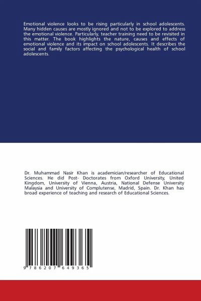 Emotional violence looks to be rising particularly in school adolescents. Many hidden causes are mostly ignored and not to be explored to address the emotional violence. Particularly, teacher training need to be revisited in this matter. The book highlights the nature, causes and effects of emotional violence and its impact on school adolescents. It describes the social and family factors affecting the psychological health of school adolescents.