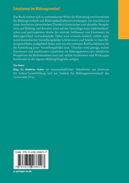 Das Buch widmet sich in systematischer Weise der Bedeutung von Emotionen für Bildungsverläufe und Bildungslaufbahnentscheidungen. Im Anschluss an einen fundierten theoretischen Überblick historischer und aktueller Perspektiven auf Bildung und Emotion wird auf der Grundlage einer multimethodischen und partizipativen Studie der zentrale Stellenwert von Emotionen im Bildungsverlauf veranschaulicht. Dabei wird erstmals deutlich, welche emotional konnotierten Vorstellungsbilder Schülerinnen und Schüler in ihrer Bildungslaufbahn maßgeblich leiten und was die zentralen Einflussfaktoren für die Entstehung jener Vorstellungsbilder sind. Überdies wird gezeigt, welche Emotionen und emotionalen Qualitäten im Bildungskontext aus subjektiver Perspektive die Bedeutendsten sind und welche Funktionen und Wirkungen Emotionen in der eigenen Bildungsbiografie zeitigen.