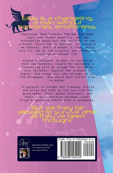 Elias is a changeling, a man without hormones, emotionless. Emotional Modification Therapy has made logic and reason powerful, but new information questions the validity of the process. Elias has no desires. It wouldn't be natural. Until a woman, Aloisa, walks into his lab at the hospital and unfamiliar cravings overpower him. Aloisa's husband, Jordan, is convinced that the monetary reward for becoming a changeling will be enough for Aloisa to live lavishly. Against her wishes, he leaves. She knows why; she refuses to let him disappear. She would much prefer love to money. In pursuit of Jordan and freedom, Aloisa and Elias are both on the run from the government. Their paths intersect, and their true connection becomes clear; Elias's emotions return with a vengeance. But will they be allowed to survive after all they've been through?