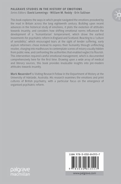 This book explores the ways which people navigated the emotions provoked by the mad in Britain across the long eighteenth century. Building upon recent advances in the historical study of emotions, it plots the evolution of attitudes towards insanity, and considers how shifting emotional norms influenced the development of a 'humanitarian' temperament, which drove the earliest movements for psychiatric reform in England and Scotland. Reacting to a 'culture of sensibility', which encouraged tears at the sight of tender suffering, early asylum reformers chose instead to express their humanity through unflinching resolve, charging into madhouses to contemplate scenes of misery usually hidden from public view, and confronting the authorities that enabled neglect to flourish. This intervention required careful emotional management, which is documented comprehensively here for the first time. Drawing upon a wide array of medical and literary sources, this book provides invaluable insightsinto pre-modern attitudes towards insanity.