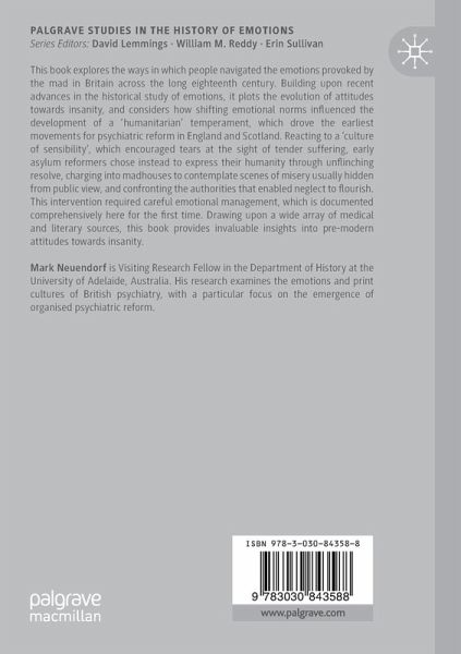 This book explores the ways which people navigated the emotions provoked by the mad in Britain across the long eighteenth century. Building upon recent advances in the historical study of emotions, it plots the evolution of attitudes towards insanity, and considers how shifting emotional norms influenced the development of a 'humanitarian' temperament, which drove the earliest movements for psychiatric reform in England and Scotland. Reacting to a 'culture of sensibility', which encouraged tears at the sight of tender suffering, early asylum reformers chose instead to express their humanity through unflinching resolve, charging into madhouses to contemplate scenes of misery usually hidden from public view, and confronting the authorities that enabled neglect to flourish. This intervention required careful emotional management, which is documented comprehensively here for the first time. Drawing upon a wide array of medical and literary sources, this book provides invaluable insightsinto pre-modern attitudes towards insanity.