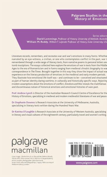 This volume addresses the place of the emotions in literary representations of war across six centuries of European history. It challenges modern assumptions about the passions and feelings attending violent conflict in order to reveal the multifarious historical emotions and emotional histories of war.