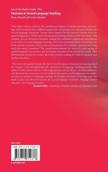 The Emotions Involved in the Integration of Information and Communication Technology (ICT) into L2 Teaching: Emotional Challenges Faced by L2 Teachers and Implications for Teacher Education, Gabriele Azzaro and Juan de Dios Martínez Agudo.- Assessment as an Emotional Practice: Emotional Challenges Faced by L2 Teachers towards Assessment and Corrective Feedback, Gavin Brown, Atta Gebril, Michalis Michaelides and Ana Remesal.- Emotional Challenges Faced by L2 Teachers When Teaching and Assessing Students with Learning Disabilities and Difficulties, Michael Dunn and Gisela Ernst-Slavit.- ESL Teachers' Emotional Experiences, Responses and Challenges in Professional Relationships with the School Community: Implications for Teacher Education, Minh Hue Nguyen.- L2 Teachers' Professional Burnout and Emotional Stress: Facing Frustration and Demotivation Towards Profession in a Japanese EFL Context, Toshinobu Nagamine.- Beyond CLIL: Fostering Student and Teacher Engagement for Personal Growth and Deeper Learning, Oliver Meyer, Do Coyle, Margarete Imhof and Theresa Connolly.- Part V Emotions in Second Language Teacher Discourse.- Emotionality in L2 Teacher Discourse: Implications for Teacher Education and Future Research Directions, Danuta Gabrys-Barker.- Silence in the Foreign Language Classroom: The Emotional Challenges for L2 Teachers, Lesley Smith and Jim King.- Native and Non-Native Teachers' Self-perceived Language Competence and their Feelings towards Collaborative Experiences and Relationships, Arthur McNeill.- Part VI Emotionality in Second Language Teacher Education.- Emotions in Learning to Teach EFL in the Practicum Setting: Facing the Emotional Challenges Associated with Professional Practice, Juan de Dios Martínez Agudo and Gabriele Azzaro.- EFL Teachers' Emotions: The Driving Force of Sustainable Professional Development, Evangelia Karagianni and Sophia Papaefthymiou-Lytra.- Developing Emotional Competence for L2 Teaching in Second Language In-Service Teacher Education: Opportunities and Challenges for Teacher Education in Poland and Turkey, Joanna Madalinska-Michalak and Bunyamin Bavli.- Teachers' Emotions and Professional Identity Development: Implications for Second Language Teacher Education, Marie-Claire Lemarchand-Chauvin and Claire Tardieu.- Afterword, Jack C. Richards.- About the Contributors.