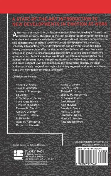 Foreword (Neal Schmitt). Preface. The Contributors. Part One: Conceptual Foundations and Measurement. 1. Emotions and Organizational Behavior (Robert G. Lord, Ruth Kanfer). 2. Conceptual and Empirical Foundations for the Study of Affect at Work (Howard M. Weiss). 3. Emotion: Models, Measures, and Individual Differences (Randy J. Larsen, Ed Diener, Richard E. Lucas). Part Two: Individual and Multiperson Regulatory Processes. 4. An Information Processing Framework for Emotional Regulation (Robert G. Lord, Jennifer L. Harvey). 5. Emotional Regulation in Individuals and Dyads: Causes, Costs, and Consequences (S. Douglas Pugh). 6. Affect Regulation in Groups and Teams (Jennifer M. George). Part Three: Applications to Applied Problems. 7. Office Sneers, Snipes, and Stab Wounds: Antecedents, Consequences, and Implications of Workplace Violence and Aggression (Theresa M. Glomb, Piers D. G. Steel, Richard D. Arvey). 8. The Emotion Regulation Behind the Customer Service Smile (Alicia A. Grandey, Analea L. Brauburger). 9. Courage and Work: Breaking Routines to Improve Performance (Monica C. Worline, Amy Wrzesniewski, Anat Rafaeli). 10. Feeling Your Way: Emotions and Organizational Entry (Blake E. Ashforth, Alan M. Saks). 11. International Perspectives on Emotion and Work (P. Christopher Earley, Clare Anne Francis). 12. An Emotional Examination of the Work-Family Interface (Shelley M. MacDermid, Brenda L. Seery, Howard M. Weiss). Part Four: Integration and Future Research 429 13. Emotion Regulation: Command and Control of Emotion in Work Life (Ruth Kanfer, Tracy M. Kantrowitz). 14. Affect and Work: Looking Back to the Future (Ruth Kanfer, Richard J. Klimoski). Name Index. Subject Index.