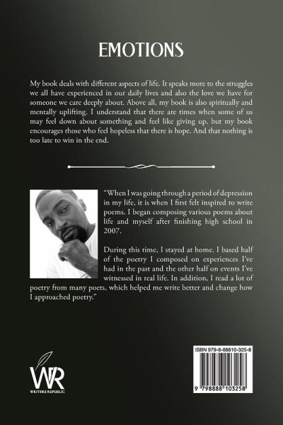 My book deals with different aspects of life. It speaks more to the struggles we all have experienced in our daily lives and also the love we have for someone we care deeply about. Above all, my book is also spiritually and mentally uplifting. I understand that there are times when some of us may feel down about something and feel like giving up, but my book encourages those who feel hopeless that there is hope. And that nothing is too late to win in the end.