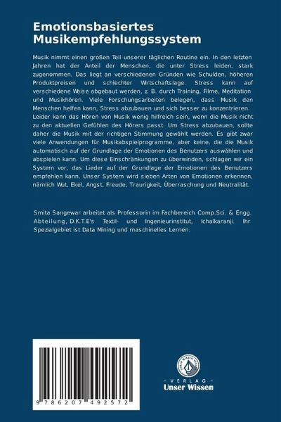 Musik nimmt einen großen Teil unserer täglichen Routine ein. In den letzten Jahren hat der Anteil der Menschen, die unter Stress leiden, stark zugenommen. Das liegt an verschiedenen Gründen wie Schulden, höheren Produktpreisen und schlechter Wirtschaftslage. Stress kann auf verschiedene Weise abgebaut werden, z. B. durch Training, Filme, Meditation und Musikhören. Viele Forschungsarbeiten belegen, dass Musik den Menschen helfen kann, Stress abzubauen und sich besser zu konzentrieren.Leider kann das Hören von Musik wenig hilfreich sein, wenn die Musik nicht zu den aktuellen Gefühlen des Hörers passt. Um Stress abzubauen, sollte daher die Musik mit der richtigen Stimmung gewählt werden. Es gibt zwar viele Anwendungen für Musikabspielprogramme, aber keine, die die Musik automatisch auf der Grundlage der Emotionen des Benutzers auswählen und abspielen kann. Um diese Einschränkungen zu überwinden, schlagen wir ein System vor, das Lieder auf der Grundlage der Emotionen des Benutzers empfehlen kann. Unser System wird sieben Arten von Emotionen erkennen, nämlich Wut, Ekel, Angst, Freude, Traurigkeit, Überraschung und Neutralität.