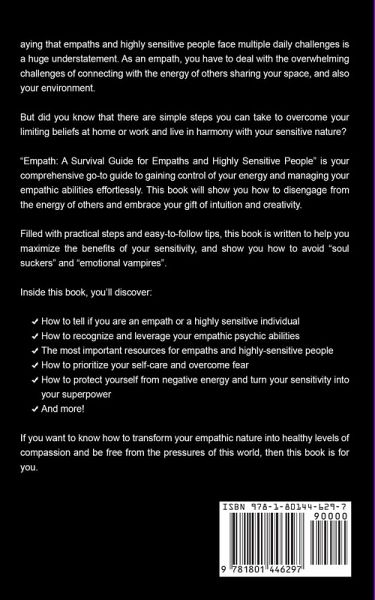 Saying that empaths and highly sensitive people face multiple daily challenges is a huge understatement. As an empath, you have to deal with the overwhelming challenges of connecting with the energy of others sharing your space, and also your environment. But did you know that there are simple steps you can take to overcome your limiting beliefs at home or work and live in harmony with your sensitive nature? "Empath: A Survival Guide for Empaths and Highly Sensitive People" is your comprehensive go-to guide to gaining control of your energy and managing your empathic abilities effortlessly. This book will show you how to disengage from the energy of others and embrace your gift of intuition and creativity. Filled with practical steps and easy-to-follow tips, this book is written to help you maximize the benefits of your sensitivity, and show you how to avoid "soul suckers" and "emotional vampires". Inside this book, you'll discover: How to tell if you are an empath or a highly sensitive individual How to recognize and leverage your empathic psychic abilities The most important resources for empaths and highly-sensitive people How to prioritize your self-care and overcome fear How to protect yourself from negative energy and turn your sensitivity into your superpower ...And more! If you want to know how to transform your empathic nature into healthy levels of compassion and be free from the pressures of this world, then this book is for you.
