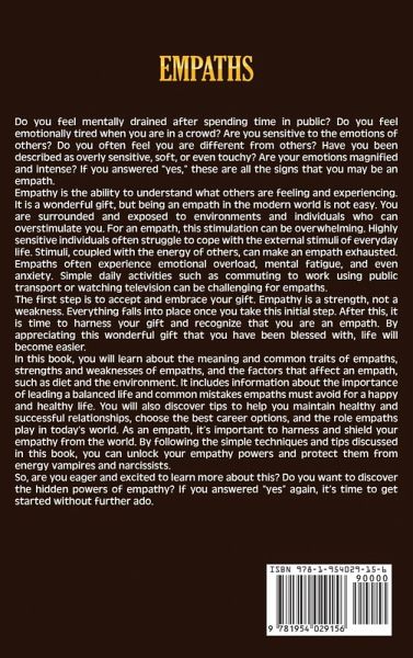 Unleash your power of empathy and harness this wonderful gift! Do you experience emotions or feelings that don't feel like your own? Are you sensitive to those around you? Do you feel overwhelmed and stimulated when you spend time in public? Do you have a strong sense of intuition about others and situations? Do your friends often approach you in times of need or difficulties? Do others describe you as sensitive? If you answered "yes," it is likely that you are an empath. If you have experienced any of the scenarios mentioned, it's because of your gift of empathy. Empathy is one's ability to understand what others are feeling and experiencing. Many individuals have extremely high levels of empathy and are sensitive to the emotions and feelings of those around them. Since they are susceptible to others' emotions and energies, empaths need to shield their personal energy. Empaths are naturally loving, caring, and healing. These natural healers are human lie detectors blessed with a strong sense of intuition. All the traits that make them special can quickly turn into their weaknesses if left unchecked. As an empath, there might have been times when you struggled to understand your gift. You might have also struggled to distinguish your feelings from the negative energy of others. If it is difficult for you to create and carry out boundaries or you wish to cultivate better relationships, it's time to embrace your gift of empathy. Everyone needs a little help from time to time. Well, you are no different. The good news is that all the information you need is in this book. You'll discover: What empathy really is. The traits of an empath. Common strengths and weaknesses of empaths. Tips for building and maintaining healthy relationships. The effects of diet and environment on empaths. Common pitfalls empaths should avoid. Techniques to harness and unlock the gift of empathy. Strategies to protect yourself from energy vampires. Best careers for empaths. And much more! The first step toward discovering your true potential as an empath is to accept your gift. If you want to do this, what are you waiting for? Take the first step today and grab your copy of this book to get started!