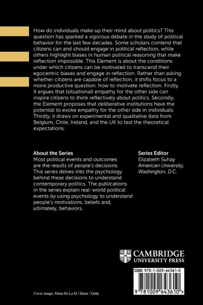 This Element is about the conditions under which citizens can be motivated to transcend their egocentric biases and engage in reflection. Rather than asking whether citizens are capable of reflection, the author shifts focus to a more productive question: how to motivate reflection.