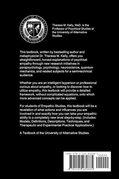 This textbook, written by bestselling author and metaphysicist Dr. Theresa M. Kelly, offers you straightforward, honest explanations of psychical empathy through new research initiatives in parapsychology, psychology, neuroscience, quantum mechanics, and related subjects for a semi-technical audience. Whether you are an intelligent layperson or professional curious about empathy, or looking to discover how to utilize empathy, this textbook will provide a detailed framework, without complicated equations, onto which more advanced concepts can be applied. For students of Empathic Studies, this textbook will be a revelation of what actions and influences you are involved in and exactly how you can take your empathic ability to a completely new level step-by-step. (Includes: Models, Definitions, Descriptions, Techniques, and Therapeutic and Experimental Practical Applications.) A Textbook of the University of Alternative Studies.