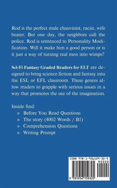 Rod is the perfect male chauvinist, racist, wife beater. But one day, the neighbors call the police. Rod is sentenced to Personality Modification. Will it make him a good person or is it just a way of turning real men into wimps? Trigger warning for domestic violence and racist and ablest language. Sci-Fi Fantasy Graded Readers for ELT are designed to bring science fiction and fantasy into the ESL or EFL classroom. These genres allow readers to grapple with serious issues in a way that promotes the use of the imagination. Inside find: Before You Read Questions The story (4002 Words / B1) Comprehension Questions Writing Prompt