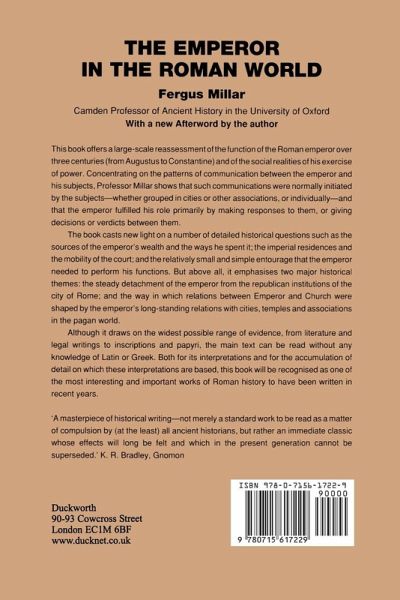 This book offers a large scale reassessment of the function of Roman emperor over three centuries (from Augustus to Constantine) and of the social realities of this exercise of power. Concentrating on the patterns of communication between the emperor and his subjects, the author shows that such communications were normally initiated by the subjects - whether grouped in cities or other associations, or individually and that the emperor fulfilled his role primarily by making responses to them or giving decisions or verdicts between them. The book casts new light on a number of detailed historical questions such as the sources of the emperor's wealth and the ways he spent it; the imperial residences and the mobility of the court; and the relatively small and simple entourage that the emperor needed to perform his functions. But above all, it emphasizes two major historical themes: the steady detachment of the emperor from the republican institutions of the city of Rome; and the way in which relations between Emperor and Church were shaped by the emperor's long-standing relations with cities, temples and associations in the pagan world. Drawing on a wide range of evidence, from literature and legal writings to inscriptions and papyri, the main text can be read without any knowledge o f Latin or Greek.