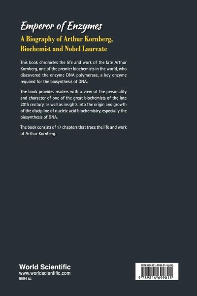 This book chronicles the life and work of the late Arthur Kornberg, one of the premier biochemists in the world, who discovered the enzyme DNA polymerase, a key enzyme required for the biosynthesis of DNA. The book provides readers with a view of the personality and character of one of the great biochemists of the late 20th century, as well as insights into the origin and growth of the discipline of nucleic acid biochemistry, especially the biosynthesis of DNA. The book consists of 17 chapters that trace the life and work of Arthur Kornberg.