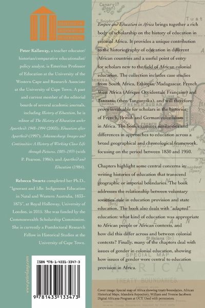 Empire and Education in Africa brings together a rich body of scholarship on the history of education in colonial Africa. It provides a unique contribution to the historiography of education in different African countries and a useful point of entry for scholars new to the field of African colonial education. The collection includes case studies from South Africa, Ethiopia, Madagascar, French West Africa (Afrique Occidentale Française) and Tanzania (then Tanganyika). It will therefore prove invaluable for scholars in the histories of French, British and German colonialism in Africa. The book examines similarities and differences in approaches to education across a broad geographical and chronological framework, with chapters focusing on the period between 1830 and 1950. The chapters highlight some central concerns in writing histories of education that transcend geographic or imperial boundaries. The text addresses the relationship between voluntary societies' role in education provision and state education. The book also deals with 'adapted' education: what kind of education was appropriate to African people or African contexts, and how did this differ across and between colonial contexts? Finally, many of the chapters deal with issues of gender in colonial education, showing how issues of gender were central to education provision in Africa.