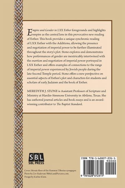 Empire and Gender in LXX Esther foregrounds and highlights empire as the central lens through which Esther is read. This book provides a unique synchronic reading of LXX Esther with the Additions, allowing the presence and negotiation of imperial power to be further illuminated throughout the story’s plot. Stone explores and demonstrates how performances of gender are inextricably intertwined with the exertion and negotiation of imperial power portrayed in LXX Esther and offers examples of connections to the range of imperial power experienced by Jewish people during the late Second Temple period.
