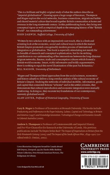 'This is a brilliant and highly original study of what the authors describe as 'imperial globalisation'. Drawing upon a huge range of literature, Thompson and Magee explore the social networks, business connections, migrational habits and shared material culture that bound together British communities at home and overseas in the long nineteenth century. In this pathbreaking book, they bring new conceptual rigour as well as empirical depth to the emerging history of the 'British World'. An outstanding achievement.' John Darwin, Nuffield College, University of Oxford