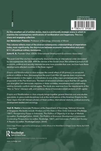 This book analyzes the overall effect of American primacy on social and political conflicts in Asia, discussing how the post-Cold War American agenda does not promote democratization in the region, in contradiction to one of the major proclaimed aims of the proponents of the Pax Americana. This team of renowned scholars argue that the US agenda can strengthen anti-democratic impulses in Asian societies, exacerbating and complicating existing domestic conflicts and struggles. Empire and Neoliberalism in Asia also examines how the requirements of the War on Terror intersect with, and reinforce, those of transnationalized sections of American capital. Drawing on country case studies, this multidisciplinary book looks at the ramifications of the American Empire for the Asian region and will appeal to anyone interested in Asian politics, international relations, political economy, development studies and sociology.