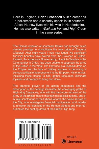 The Roman invasion of southeast Britain had brought much needed prestige to consolidate the new reign of Emperor Claudius. After eight years it has now faded. No significant financial benefits have flowed from the Province of Britain. Instead, the expensive Roman army, of which Claudius is the Commander in Chief, has been unable to suppress the army of the British in the West. The Province is a financial drain on the Empire and the lack of military success is becoming a serious political embarrassment to the Emperor. His enemies, including those closest to him, gather resources, eliminate loyalists and prepare to bring him down. The dramatic power of the action sequences and the description of the settings illuminate the converging paths of High King Caratacos, who with the hard-core remnant of the army of the British tries to maintain his political footing, and of Aurelius Victorinus of the Urban Cohorts, the police service of the City, who investigates financial manipulation.