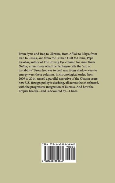From Syria and Iraq to Ukraine, from AfPak to Libya, from Iran to Russia, and from the Persian Gulf to China, foreign correspondent Pepe Escobar, author of The Roving Eye column for Asia Times/Hong Kong, crisscrosses what the Pentagon calls the "arc of instability." As Escobar tells it in the introduction, "the columns selected for this volume follow the period 2009-2014 - the Obama years so far. A continuum with previous volumes published by Nimble Books does apply. Globalistan, from 2007, was an extended reportage/warped travel book across the Bush years, where I argued the world was being plunged into Liquid War - alluding to energy flows but also to the liquid modernity character of post-modern war. Red Zone Blues, also from 2007, was a vignette - an extended reportage centering on the Baghdad surge. And Obama does Globalistan, from 2009, examined how the hyperpower could embark on a "change we can believe in". The outcome, as these columns arguably reflect, is Empire of Chaos - where a plutocracy progressively projects its own internal disintegration upon the whole world." "You will find some key overlapping nations/themes/expressions/acronyms in these columns; Iran, Iraq, Syria, Afghanistan, Pakistan, Central Asia, China, Russia, Ukraine, Pipelineistan, BRICS, EU, NATO, GCC, the Global South, GWOT (the global war on terror), The New Great Game, Full Spectrum Dominance. You will also find a progressive drift towards not conventional war, but above all economic war - manifestations of Liquid War." Incrementally, I have been arguing that Washington's number one objective now is to prevent a full economic integration of Eurasia that would leave the U.S. as a non-hegemon, or worse still, an outsider. Thus the three-pronged strategy of "pivoting to Asia" (containment of China); Ukraine (containment of Russia); and beefing up NATO (subjugation of Europe, and NATO as Global Robocop)." Book the ultimate trip to the Empire of Chaos, and see how the U.S. - and the West - are tackling the emergence of a multipolar world.