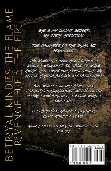 Betrayal kindles the flame. Revenge fuels the fire. She's my illicit secret. My dirty addiction. The daughter of the rival MC president. The moment I saw Alex Cross, I knew I wouldn't be able to walk away. And from our first touch, my little voyeur became my obsession. But when I learn about her father's involvement in the death of my twin brother, I know what I must do. It's brother against brother. Club against club. Now I need to decide whose side I'm on.