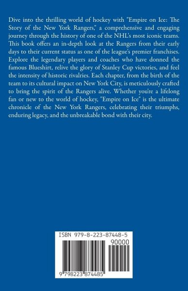 Dive into the thrilling world of hockey with "Empire on Ice: The Story of the New York Rangers," a comprehensive and engaging journey through the history of one of the NHL's most iconic teams. This book offers an in-depth look at the Rangers from their early days to their current status as one of the league's premier franchises. Explore the legendary players and coaches who have donned the famous Blueshirt, relive the glory of Stanley Cup victories, and feel the intensity of historic rivalries. Each chapter, from the birth of the team to its cultural impact on New York City, is meticulously crafted to bring the spirit of the Rangers alive. Whether you're a lifelong fan or new to the world of hockey, "Empire on Ice" is the ultimate chronicle of the New York Rangers, celebrating their triumphs, enduring legacy, and the unbreakable bond with their city.