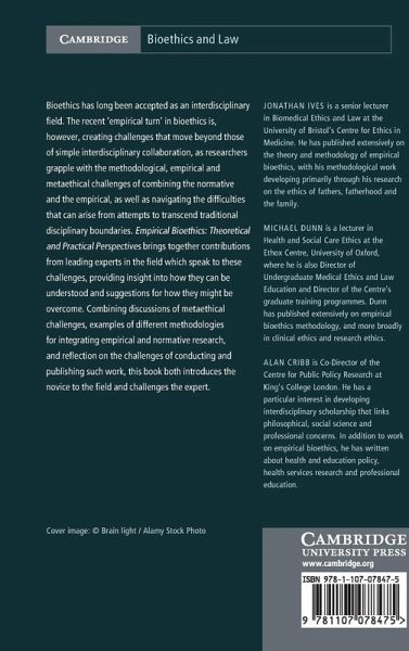 Bioethics has long been accepted as an interdisciplinary field. The recent 'empirical turn' in bioethics is, however, creating challenges that move beyond those of simple interdisciplinary collaboration, as researchers grapple with the methodological, empirical and meta-ethical challenges of combining the normative and the empirical, as well as navigating the difficulties that can arise from attempts to transcend traditional disciplinary boundaries. Empirical Bioethics: Theoretical and Practical Perspectives brings together contributions from leading experts in the field which speak to these challenges, providing insight into how they can be understood and suggestions for how they might be overcome. Combining discussions of meta-ethical challenges, examples of different methodologies for integrating empirical and normative research, and reflection on the challenges of conducting and publishing such work, this book will both introduce the novice to the field and challenge the expert.