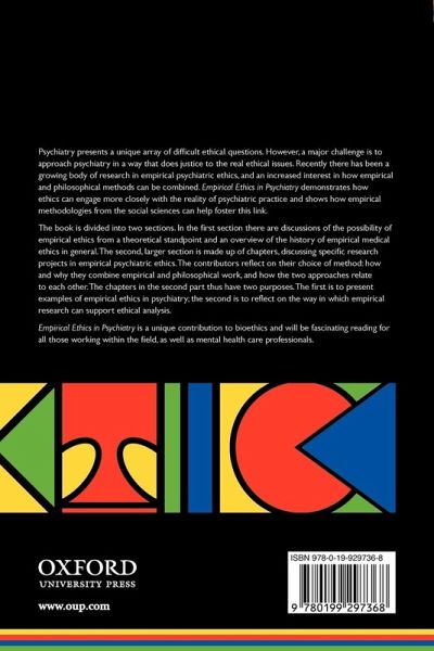Psychiatry presents a unique array of difficult ethical questions. However, a major challenge is to approach psychiatry in a way that does justice to the real ethical issues. Recently there has been a growing body of research in empirical psychiatric ethics, and an increased interest in how empirical and philosophical methods can be combined. Empirical Ethics in Psychiatry demonstrates how ethics can engage more closely with the reality of psychiatric practice and shows how empirical methodologies from the social sciences can help foster this link. The book is divided into two sections. In the first section there are discussions of the possibility of empirical ethics from a theoretical standpoint and an overview of the history of empirical medical ethics in general. The second, larger section is made up of chapters, discussing specific research projects in empirical psychiatric ethics. The contributors reflect on their choice of method: how and why they combine empirical and philosophical work, and how the two approaches relate to each other. The chapters in the second part thus have two purposes. The first is to present examples of empirical ethics in psychiatry; the second is to reflect on the way in which empirical research can support ethical analysis. Empirical Ethics in Psychiatry is a unique contribution to bioethics and will be fascinating reading for all those working within the field, as well as mental health care professionals.
