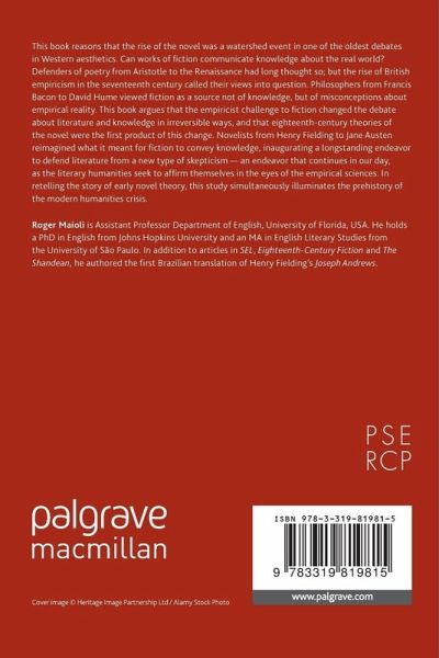 "Empiricism and the Early Theory of the Novel explores the impact of the empirical turn in philosophy on how imaginative writing could be justified in the seventeenth and eighteenth centuries. ... Maioli's conclusion demonstrates how eighteenth-century novel theory prefigures modern arguments about the value of the humanities. ... It is a thought-provoking end to a thoroughly engaging book." (Gillian Skinner, The BARS Review, Issue 52, 2018)