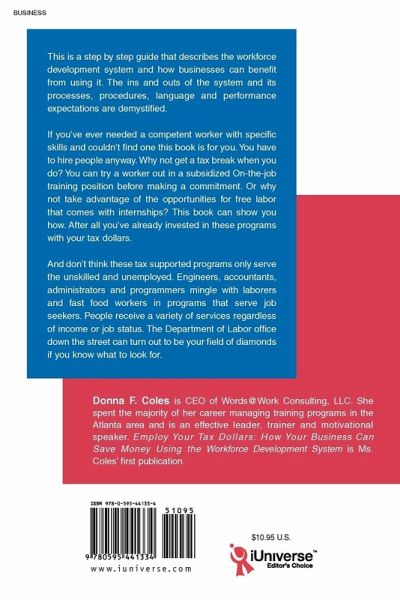 This is a step by step guide that describes the workforce development system and how businesses can benefit from using it. The ins and outs of the system and its processes, procedures, language and performance expectations are demystified. If you've ever needed a competent worker with specific skills and couldn't find one this book is for you. You have to hire people anyway. You can try a worker out in a subsidized On-the-job training position before making a commitment. Or why not take advantage of the opportunities for free labor that comes with internships? This book can show you how. After all you've already invested in these programs with your tax dollars. And don't think these tax supported programs only serve the unskilled and unemployed. Engineers, accountants, administrators and programmers mingle with laborers and fast food workers in programs that serve job seekers. People receive a variety of services regardless of income or job status. The Department of Labor office down the street can turn out to be your field of diamonds if you know what to look for.