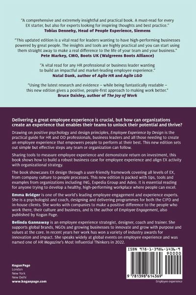 Emma Bridger is one of the world's leading employee engagement and experience experts. She is a psychologist and coach, designing and delivering programs for both the CIPD and in-house clients. She works with companies to make a positive difference to the people who work there, their culture and business. She is the author of Employee Engagement, also published by Kogan Page.. Belinda Gannaway is an employee experience strategist, designer, coach and trainer. She supports global brands, NGOs and growing businesses to innovate and grow with purpose and values at the core. In recent years, her work has won a variety of industry awards for innovation and impact. Shespeaks widely at global events on employee experience and was named one of HR Magazine's Most Influential Thinkers in 2022.