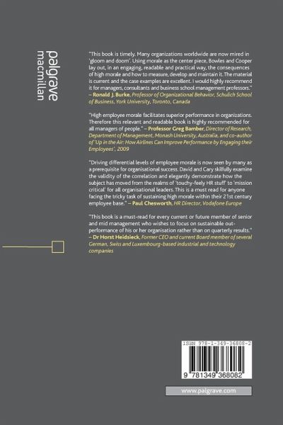'Driving differential levels of employee morale is nowseen by many as a prerequisite for organisational success. David and Cary skilfully examine the validity of the correlation and elegantly demonstrate how the subject has moved from the realms of 'touchy-feely HR stuff' to 'mission critical' for all organisational leaders. This is a must read for anyone facing the tricky task of sustaining high morale within their 21st century employee base.' - Paul Chesworth, HR Director, Vodafone Europe