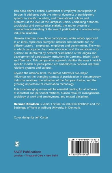 A critical assessment of employee participation in Europe is offered in this book. It addresses both the internal dynamics of participatory systems in specific countries, and transnational policies and problems at the level of the European Union. Combining historical, sociological and comparative analysis, the author presents a rounded understanding of the role of participation in contemporary industrial relations.