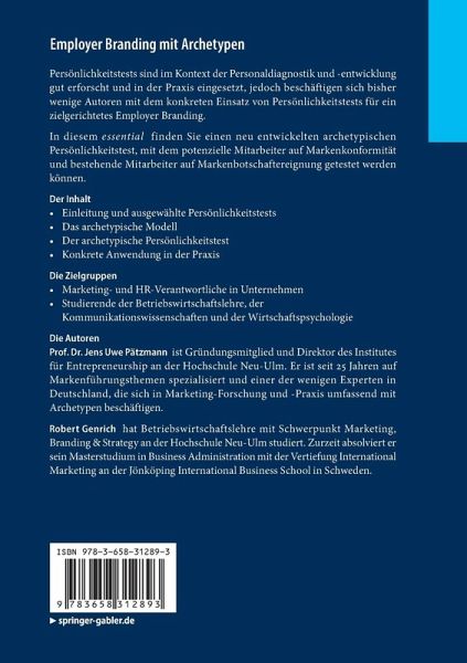 Persönlichkeitstests sind im Kontext der Personaldiagnostik und -entwicklung gut erforscht und in der Praxis eingesetzt, jedoch beschäftigen sich bisher wenige Autoren mit dem konkreten Einsatz von Persönlichkeitstests für ein zielgerichtetes Employer Branding.In diesem essential finden Sie einen neu entwickelten archetypischen Persönlichkeitstest, mit dem potenzielle Mitarbeiter auf Markenkonformität und bestehende Mitarbeiter auf Markenbotschaftereignung getestet werden können.