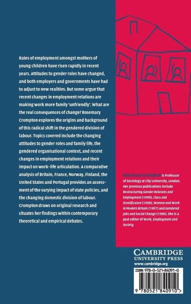 Rates of employment amongst mothers of young children have risen rapidly in recent years. Attitudes to gender roles have changed, and both employers and governments have had to adjust to new realities. But some argue that recent changes in employment relations are making work more family 'unfriendly'. What are the real consequences of change? Rosemary Crompton explores the origins and background of this radical shift in the gendered division of labour and relates it to both family and employment. Based on original research, it makes a valuable contribution.