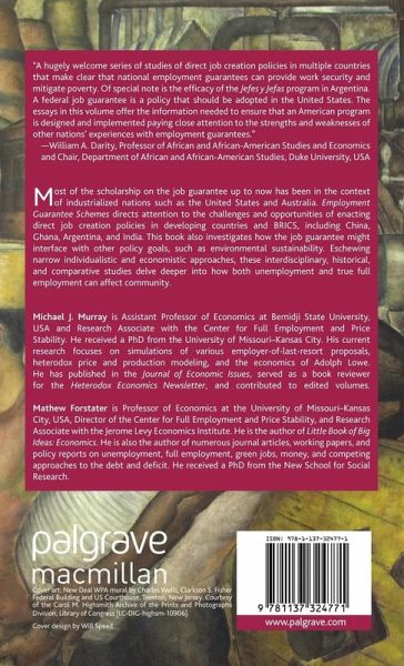 "A hugely welcome series of studies of direct job creation policies in multiple countries that make clear that national employment guarantees can provide work security and mitigate poverty. Of special note is the efficacy of the Jefes y Jefas program in Argentina. A federal job guarantee is a policy that should be adopted in the USA. The essays in this volume offer the information needed to insure that an American program is designed and implemented paying close attention to the strengths and weaknesses of other nation's experiences with employment guarantees." - William A Darity, Professor of African and African-American Studies and Economics and Chair, Department of African and African American Studies, Duke University, USA