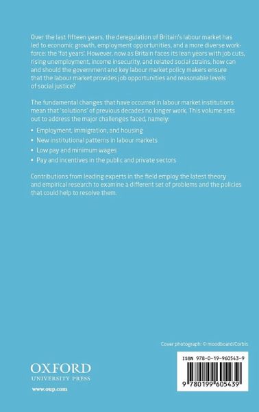 Over the last fifteen years, the deregulation of Britain's labour market has led to economic growth, employment opportunities, and a more diverse workforce: the 'fat years'. However, now as Britain faces its lean years with job cuts, rising unemployment, income insecurity, and related social strains, how can and should the government and key labour market policy makers ensure the labour market provides job opportunities and reasonable levels of social justice? The fundamental changes that have occurred in labour market institutions mean that 'solutions' of previous decades no longer work. This volume sets out to address the major challenges faced: - Unemployment, immigration, housing and job subsidies - Key institutional changes, such as the decline of collective regulation and the rise of occupational licensing - Pay inequality and minimum wages - Pay and subsidies in the private and public sector Contributions from leading experts in the field employ the latest theory and empirical research to examine a different set of problems and the policies that could help to resolve them.