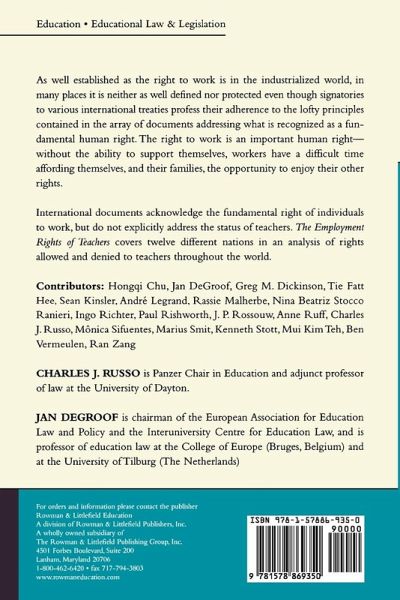 As well-established as the right to work is in the industrialized world, in many places it is neither as well-defined nor protected even though signatories to various international treaties profess their adherence to the lofty principles contained in the array of documents addressing what is recognized as a fundamental human right. The right to work is an important human right-without the ability to support themselves, workers have a difficult time affording themselves, and their families, the opportunity to enjoy their other rights. International documents acknowledge the fundamental right of individuals to work, but do not explicitly address the status of teachers. Employment Rights of Teachers covers twelve different nations in an analysis of rights allowed and denied to teachers throughout the world.