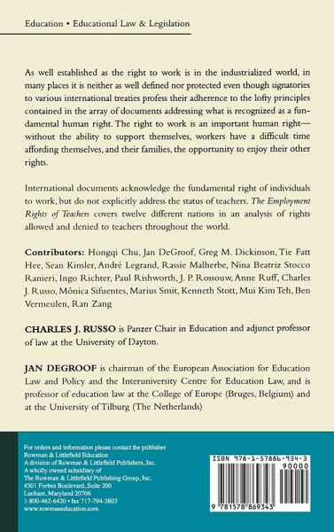 As well-established as the right to work is in the industrialized world, in many places it is neither as well-defined nor protected even though signatories to various international treaties profess their adherence to the lofty principles contained in the array of documents addressing what is recognized as a fundamental human right. The right to work is an important human right-without the ability to support themselves, workers have a difficult time affording themselves, and their families, the opportunity to enjoy their other rights. International documents acknowledge the fundamental right of individuals to work, but do not explicitly address the status of teachers. Employment Rights of Teachers covers twelve different nations in an analysis of rights allowed and denied to teachers throughout the world.