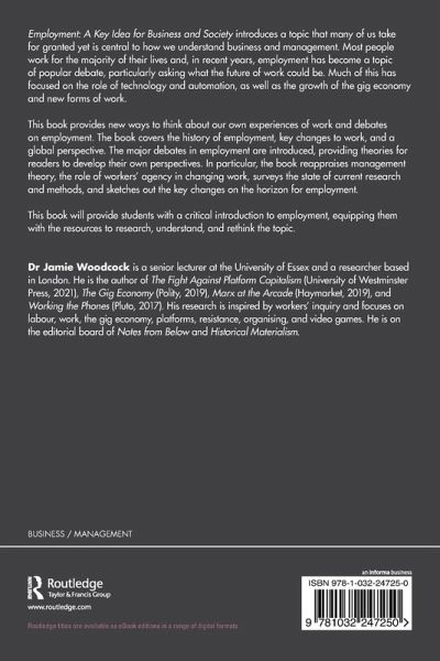 Employment: A Key Idea for Business and Society introduces a topic that many of us take for granted yet is central to how we understand business and management. Most people work for the majority of their lives and, in recent years, employment has become a topic of popular debate, particularly asking what the future of work could be. Much of this has focused on the role of technology and automation, as well as the growth of the gig economy and new forms of work.