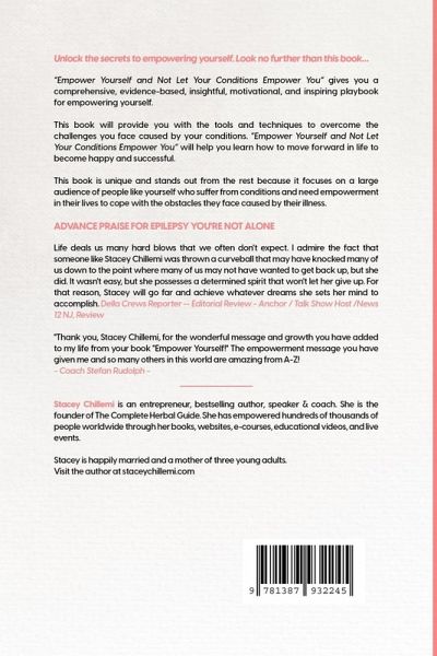 Are you tired of letting your circumstances dictate your life? Do you want to break free from the limitations and unlock your true potential? Look no further than 'Empower Yourself: Don't Let Your Conditions Empower You' by Stacey Chillemi. In this empowering book, Stacey Chillemi shares her personal journey and reveals powerful strategies to help you overcome any adversity and take charge of your life. This book is filled with practical advice, inspiring stories, and actionable steps that will guide you toward creating the life you've always dreamed of. No matter what challenges you're facing - whether it's financial struggles, health issues, or emotional setbacks - 'Empower Yourself' will show you how to shift your mindset, tap into your inner strength, and turn your challenges into opportunities for growth and success. Don't let your conditions hold you back any longer. It's time to break free, take control, and unleash your full potential. Get your copy of 'Empower Yourself: Don't Let Your Conditions Empower You' today and start your transformational journey towards a life of empowerment and fulfillment. **Take action now! Grab your copy of 'Empower Yourself: Don't Let Your Conditions Empower You,' and start embracing the power within you to create the life you deserve. Your journey toward personal empowerment starts here!