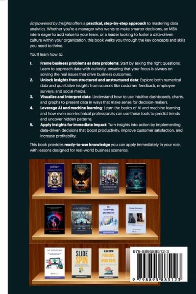 In a world where data drives everything, the ability to extract insights and act on them is the key to business success. Yet, many leaders and teams struggle to translate raw data into meaningful results. Empowered by Insights is here to change that. This book introduces the BEACON framework, a simple yet powerful process designed to help you unlock the full potential of data. Whether you're a business executive looking to improve decision-making, a manager eager to drive team performance, or a data scientist looking for practical guidance, this book delivers the tools and strategies you need. What You'll Learn: Align Business Goals with Data: Learn how to clearly define business objectives and identify the right data to achieve them. Establish Actionable KPIs: Discover how to select the key metrics that will lead your business to success. Analyze and Uncover Insights: Dive deep into data to diagnose root causes, reveal opportunities, and drive innovation. Craft Data-Driven Stories: Turn complex insights into compelling narratives that inspire and influence decision-makers. Develop and Execute Action Plans: Create clear, measurable strategies that align with your business goals and ensure lasting results. Leverage Emerging Trends: Stay ahead of the curve with insights into AI, predictive analytics, and the latest data trends.